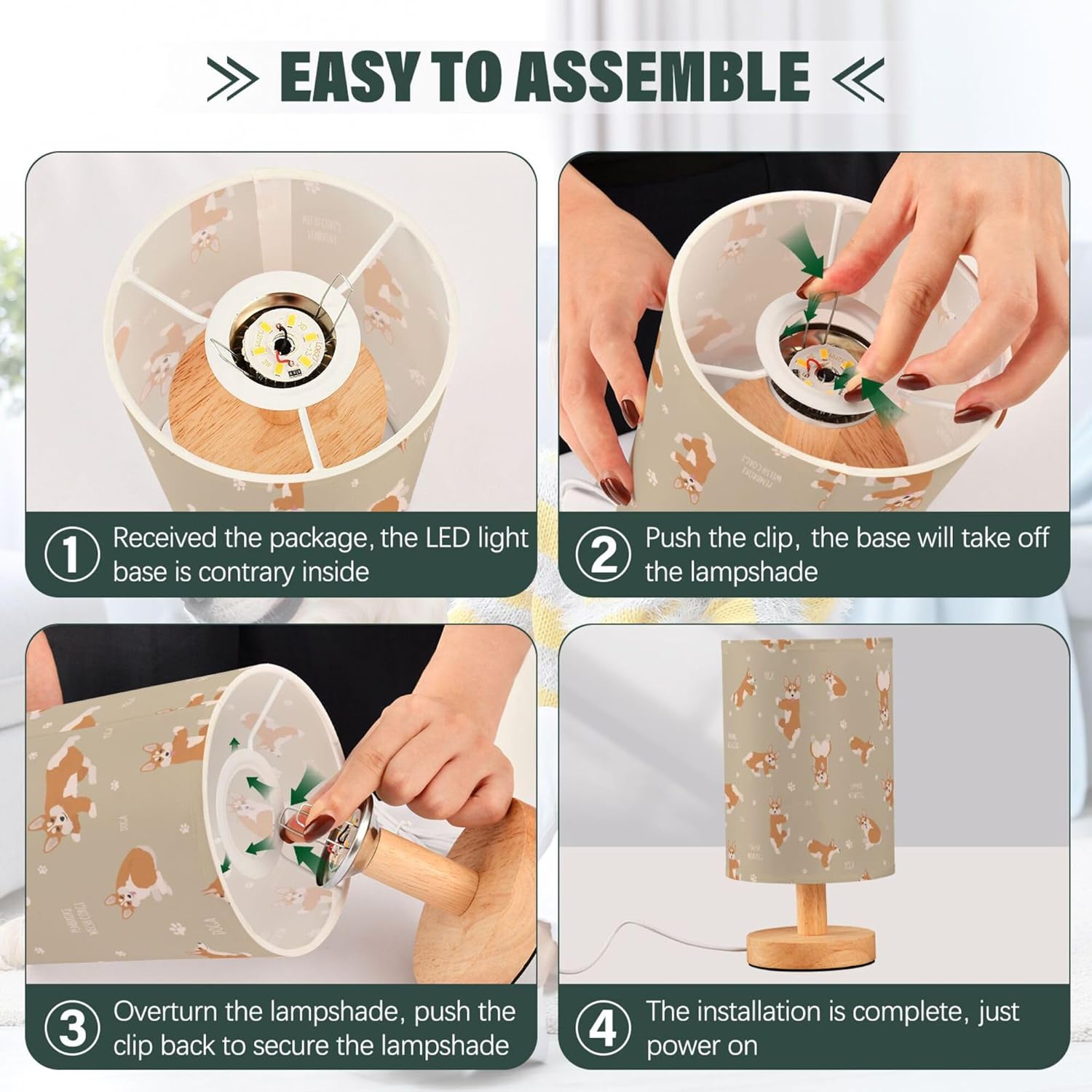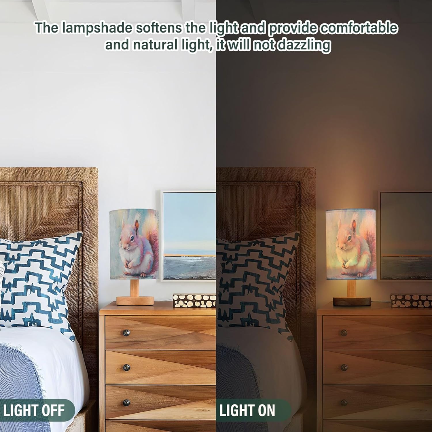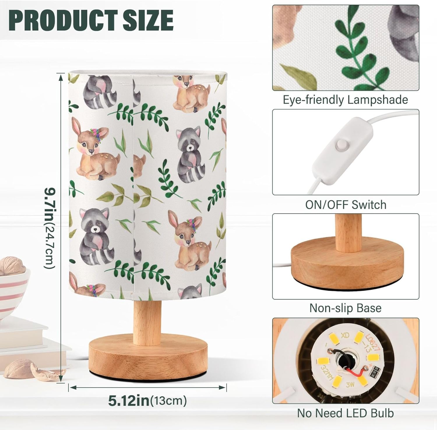 YYZZH Space Dinosaurs Planets Stars Pattern Table Lamps Night Light Nightstand Lamp With Wood Base Fabric Lamp Shade Bedside Desk Lamp For Nursery Bedroom Living Room Kids Room OfficeSize: 13 cm (diameter of the lampshade) x 24.7 cm / 5.12 inches (diameter of the lampshade) x 9.7 inches; Printing instructions: lampshade printing;Material: linen fabric (lampshade) + LED light (no light bulb) with wooden base + USB button line (non-demolition);Feature: the table lamp includes a lampshade, no need to install a light bulb, the LED light is integrated with the stable wooden base, a short-end button switch, which is convenient for you to turn on or turn off the lights, USB interface, plug and use the desk lamp; Non-flashing warm lights protect your children and family's eyes;Applicable scene: suitable for bedrooms, guest rooms, living rooms, study, boy's and girls' rooms, offices, desks, etc;Instructions for usage: ①The lamp holder and the lampshade for reverse packaging, you need to separate them first; ②Press down the center buckle to separate the lamp seat and the lampshade; ③Press the lampshade center buckle into the ring, then the install is complete; ④Control USB to the power supply and control the button switch.